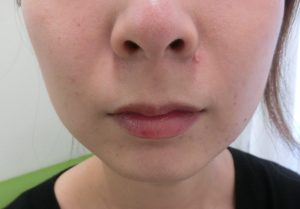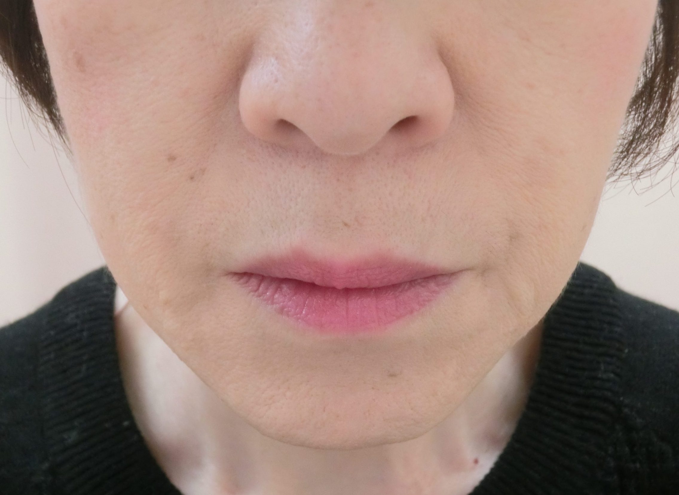 元々深くほうれい線のしわがある方ではありませんが、beforeは頬のタルミにより少し影がありますが、afterはつるっとして影もなくなりました!