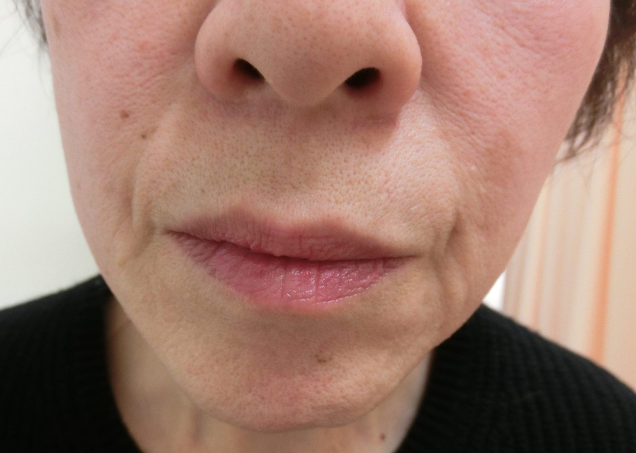 ほうれい線からマリオネットラインにかけての深いしわが浅くなり目立たなくなりました。細かいちりめんじわもキレイになっています。